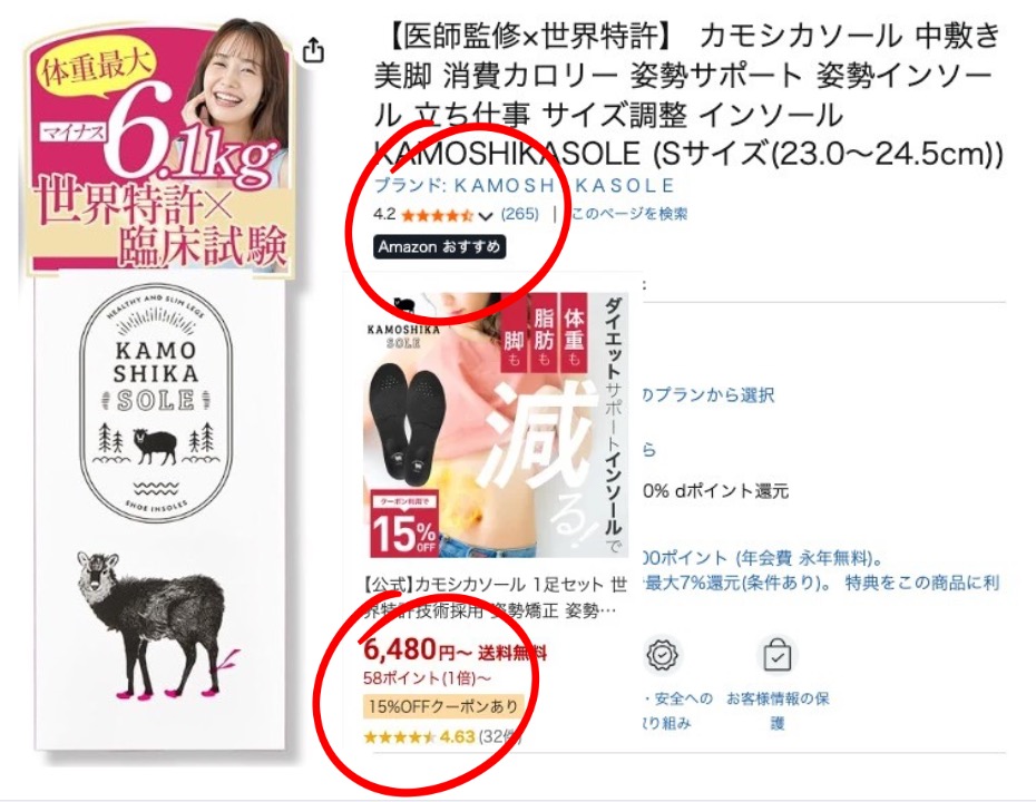 【口コミ】カモシカソールはAmazon・楽天でも高評価!