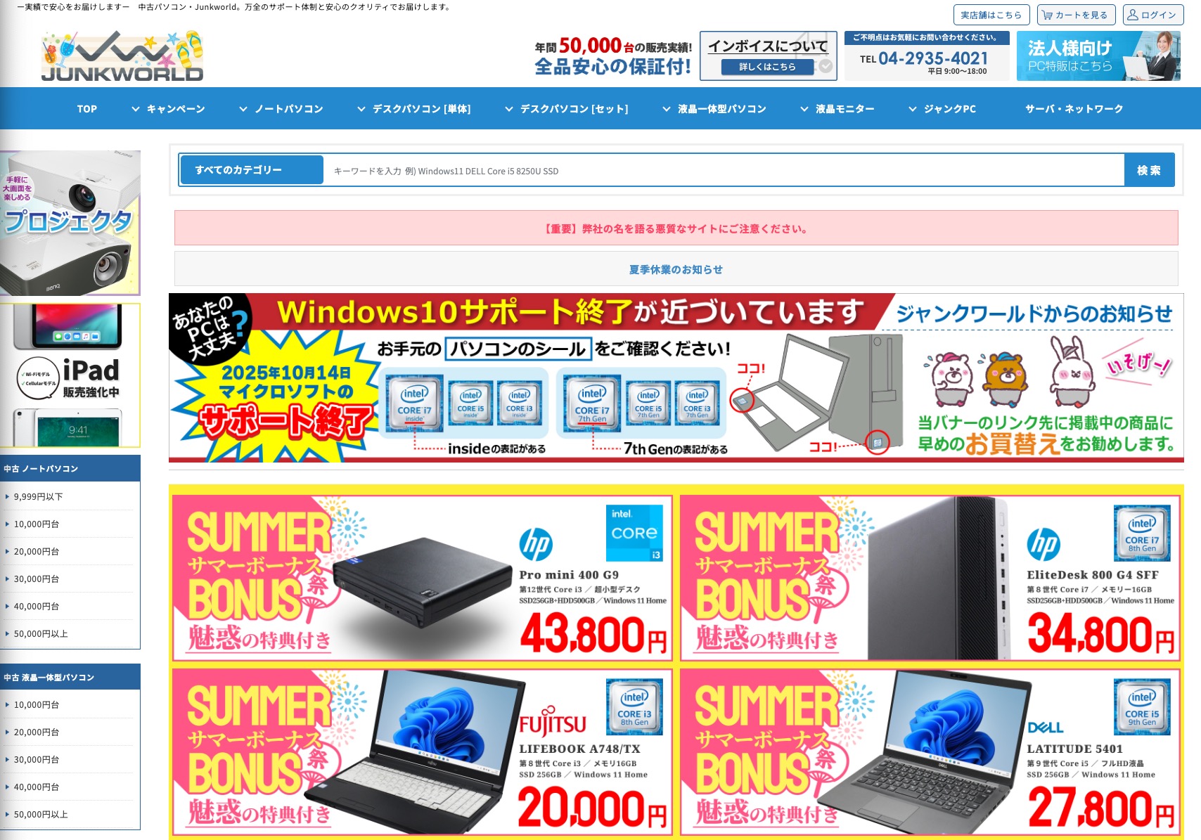 仕事にも学習にも使える中古なら、ジャンクワールド PC