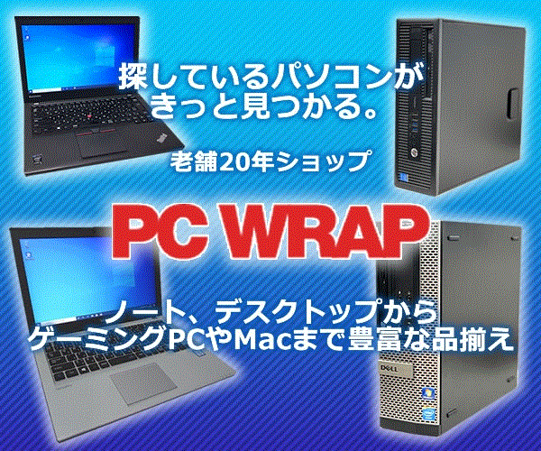 「中古パソコンは不安…」その気持ちを100%解消してくれるのがPC WRAPです。 最大の特徴は、なんといっても業界最長クラスの「3年間保証」。新品のメーカー保証を超えるこの手厚さこそ、品質に対する絶対的な自信の表れです。