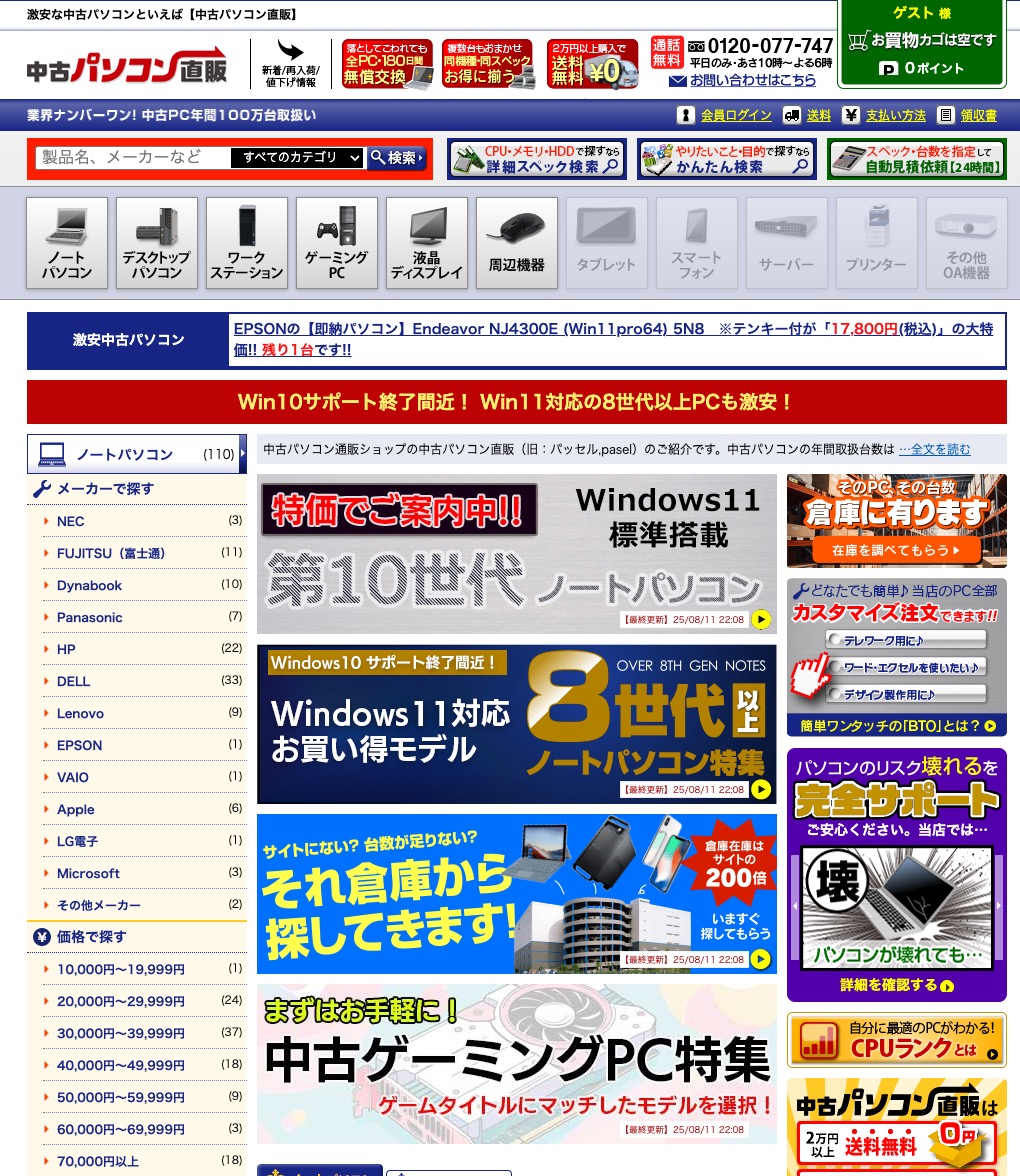 在庫の幅が広いのも利点。ノート・デスクトップ・モニター・周辺機器までラインナップが揃い、価格帯も段階的。入れ替わりが早いので、こまめに見るほど掘り出し物に出会いやすくなります。